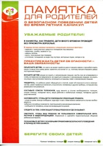 ПАМЯТКА для родителей о безопасности детей во время летних каникул