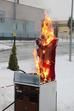 Возгорание одежды на человеке – ситуация, которую организаторы оставили напоследок. В роли человека, нарушающего правила безопасности, - манекен Клавдия Ивановна.