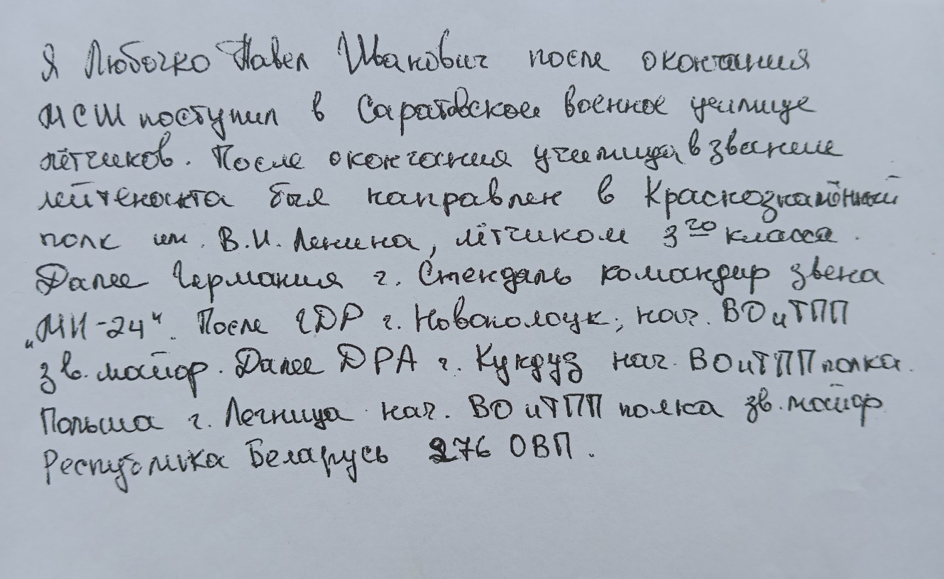 Субъект: Любочко Павел Иванович, майор, военный лётчик, воин‑афганец